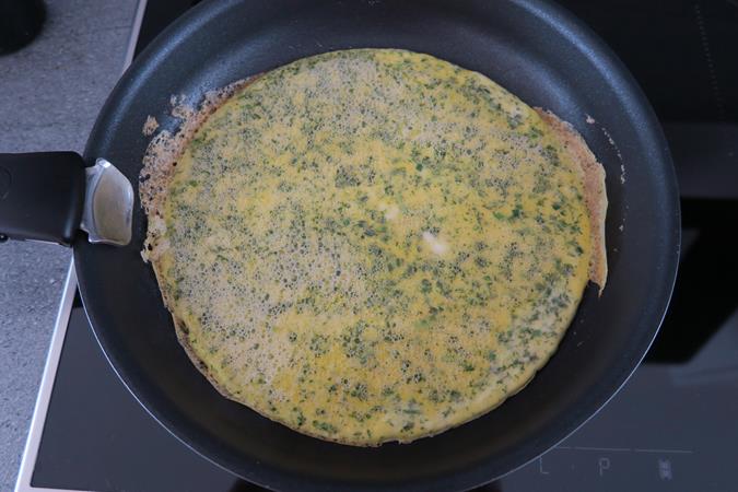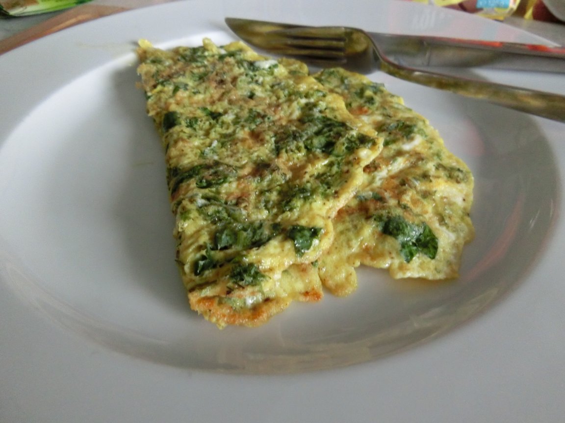 • Ich habe heute das Kräuteromelett gemacht. Ging schnell und einfach. Ich habe eine wilde Kräutermischung hinzugefügt - was da gerade so wächst - Bockshornklee, glatte Petersilie, Schnittlauch, etwas Ruccola.