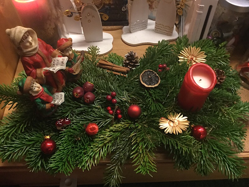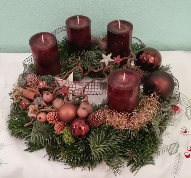 Vielleicht habt ihr ja Lust zu zeigen, welche Adventskränze dieses Jahr bei euch stehen, ob sie selbstgemacht oder gekauft sind. Oder auch anderer Schmuck mit dem ihr euer Zuhause gerade verziert.