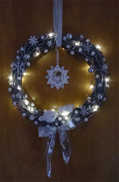 Unseren Kranz kaufen wir jetzt schon seit ein paar Jahren auf dem Adventsmarkt bei uns im Ort von einer hier lebenden Bauersfamilie. Die Einnahmen kommen unserer Freiwilligen Feuerwehr zugute, da kann man ja schon fast nicht nein sagen.![]()