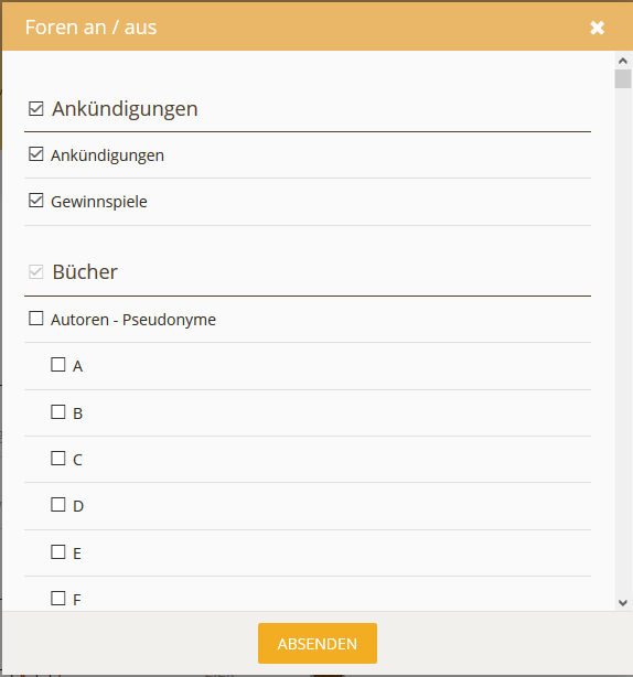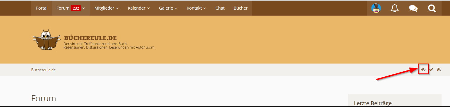 Das Icon mit dem Auge öffnet eine Liste, bei der man die anzuzeigenden Foren anhaken kann.