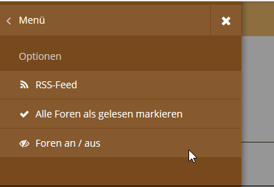 In der mobilen Ansicht findet man diese Punkte oben links im Menu, sofern man sich auf der Forums-Seite befindet