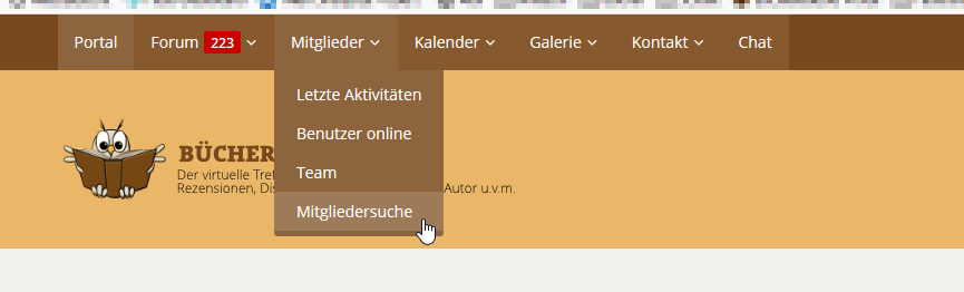 Um die Beiträge eines Forumsmitglieds zu suchen, sucht man als erstes das Mitglied über die Mitgliedssuche heraus:
