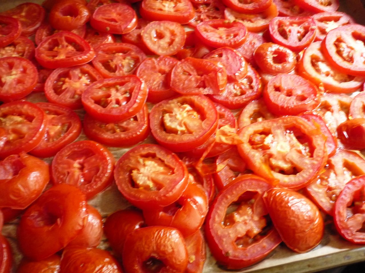 Wenn Du den Tarteboden vorgebacken hast, könntest Du die Tomaten doch anschließend energiesparend etwas länger (ca. 90 Minuten) im ausgeschalteten Ofen antrocknen lassen. Oder Du legst sie (mit einer Fliegenhaube oder ähnlichem geschützt) für etwa zwei Stunden in die pralle Sonne. So haben sie es in der Provence früher auch gemacht.