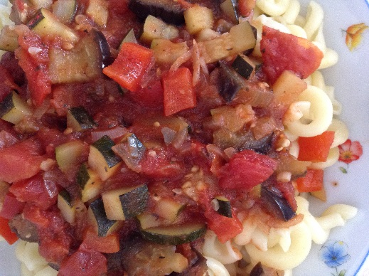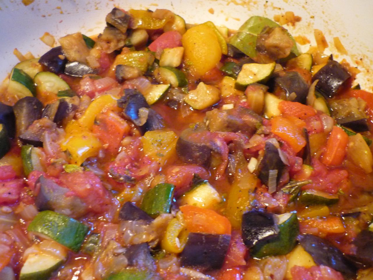 statt Tomaten habe ich Pizzatomaten mit Basilikum genommen. Thymian und Basilikum habe ich etwas getrockneten genommen, bin eh nicht der Basilikumfan ;-). Wenn das Gericht auch von Zuhause da gab es das immer wieder als Beilage. Ich gebe die Paprika allerdings nicht vorher in den Backofen sondern brate sie in der Pfanne an bevor der Rest nach und nach dazu kommt. Bei mir gab es Nudeln dazu.