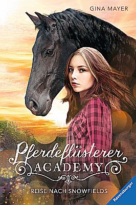 Gina Mayer: Pferdeflüsterer Academy, Band 1: Reise nach Snowfields (ab 10 J.), Ravensburg 2018, Ravensburger Buchverlag, ISBN 978-3-473-40450-6, Hardcover, 221 Seiten, Format: 14,3 x 2,4 x 21,5 cm, Buch: EUR 9,99 (D), EUR 10,30 (A), Kindle Edition: EUR 8,99, Audio-CD: EUR 9,95.