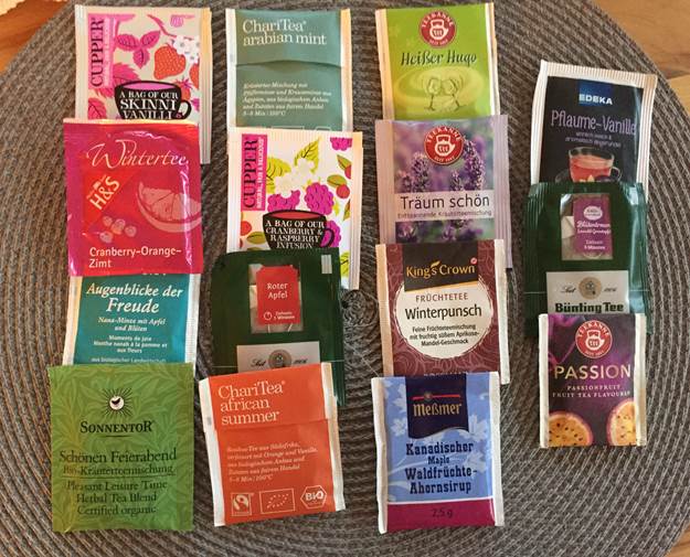 Da ich für Göga und mich früh immer eine große 1-L-Tasse Tee für den Tag mache und immer eine schöne Sammlung da haben möchte, halte ich ständig nach neuen Tees Ausschau. Manche Tees gibt es ja auch irgendwann nicht mehr.