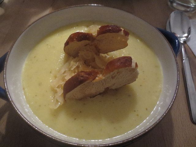 69 Kartoffelsuppe mit Sauerkraut und Laugenchips