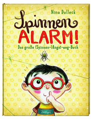 Nina Dulleck: Spinnen-Alarm! Das große (Spinnen-) Angst-weg-Buch, (4 – 6 Jahre) Hamburg 2018, Verlag Friedrich Oetinger, ISBN 978-3-7891-0790-0, Hardcover, 32 Seiten mit farbigen Illustrationen von Nina Dulleck, Format: 22 x 1 x 28,7 cm, EUR 13,00.