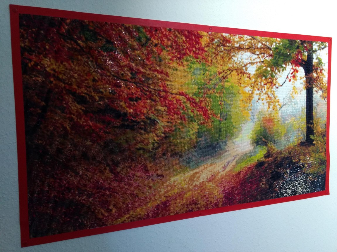 Man muss schon was für Fieselkram übrig haben, wenn man so große Bilder machen will. Das einzige was mich etwas genervt hat war, dass halt immer ein Tisch damit belegt ist. Am besten wäre ein weiteres Zimmer, nur für Hobbyarbeiten. Dann hätte ich auch mal Platz für meine Stoffe und Wollesammlung.