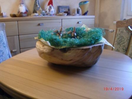 Jetzt steht sie auf unserem Tisch, sieht soo toll aus und dient jetzt als Osterschale.