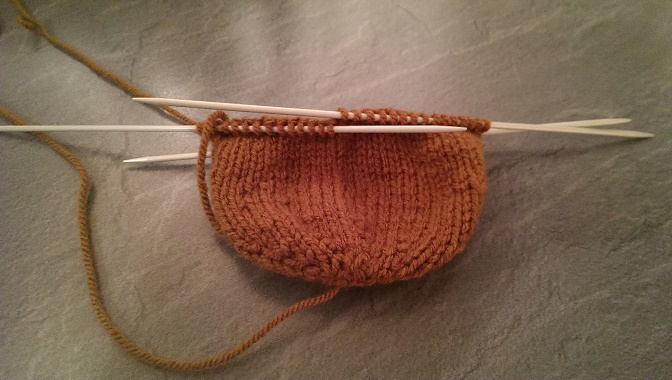 Ich hab heute 26 Reihen von dem Lemming gestrickt und so sieht der Zwischenstand aus.