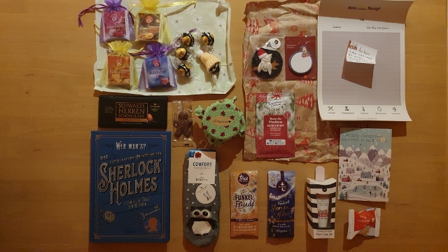 So ein tolles Paket! Ich bin immer noch ganz überwältigt von all den schönen Sachen, die mir im Weihnachtsurlaub reichlich Gelegenheit zum Naschen, Trinken, Lesen, Baden und Genießen geben werden.