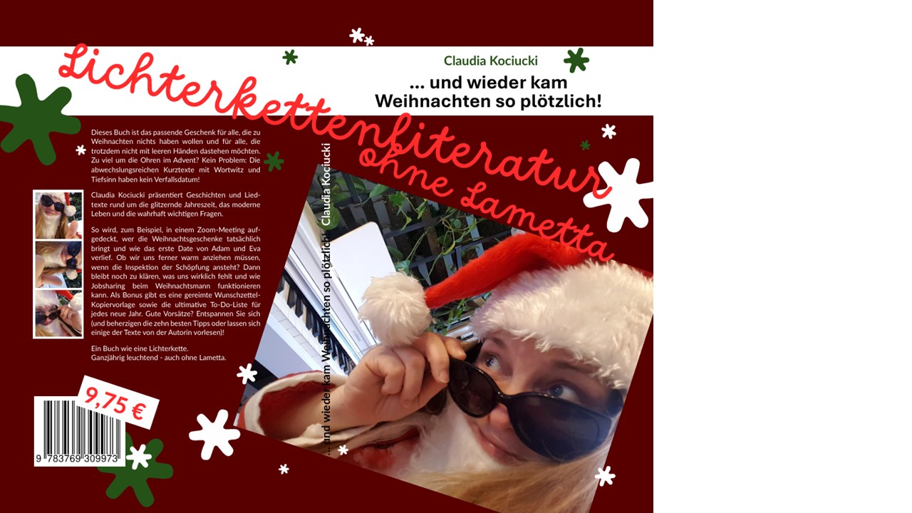 Das Buch kostet übrigens 9,75 €, und gegen Übernahme der Portokosten versende ich gerne Exemplare mit Widmung. Natürlich könnt ihr das Buch auch in jeder Buchhandlung bestellen (ISBN 9783769309973). … und wieder kam Weihnachten so plötzlich! Lichterkettenliteratur ohne Lametta – Claudia Kociucki *WERBUNG ENDE*