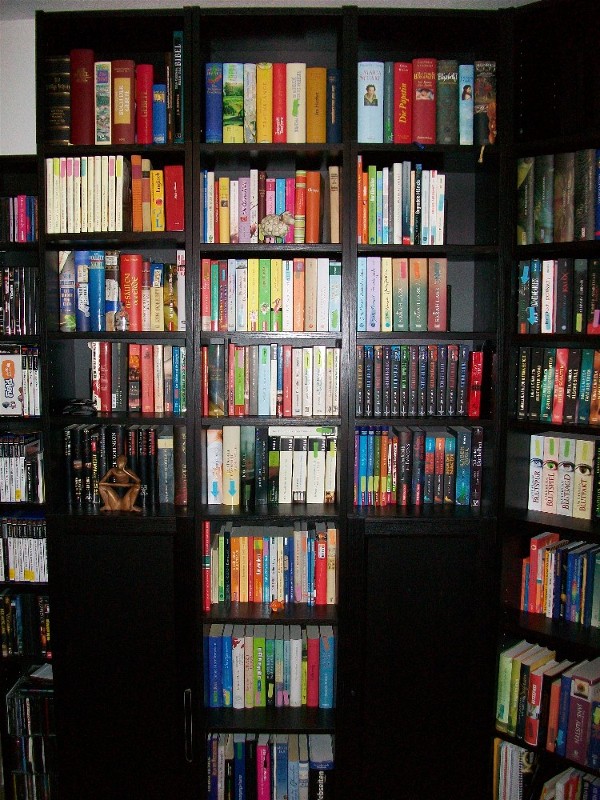 So ich habe grade mal wieder mein Billys neu bestückt. Also wieder umgeräumt und Regalböden hin und her getauscht und das Ergebnis kann sich sehen lassen: 2 Fächer sind wieder frei und wenn ich mir noch einen Regalboden kaufe, dann könnte ich noch ein TB-Fach zusätzlich hinzufügen