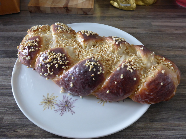 Ich würde den Zopf in Zukunft definitiv bei nicht mehr als 160° backen und lieber länger backen, auch wenn er dadurch etwas trockener wird.Der Guss