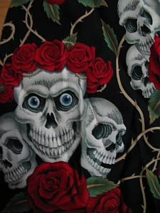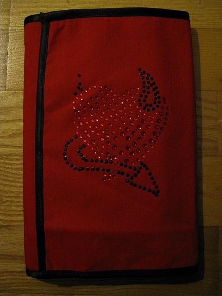 Baumwollstoff rot mit Strassstein-Bild "Devilheart" für HC (absolutes Unikat) --> 18 €
